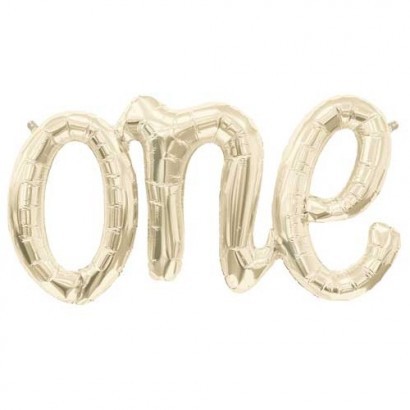 The balloon banner for every party! This stylish scripted white gold foil balloon banner spells 'one', and sets the scene perfectly.