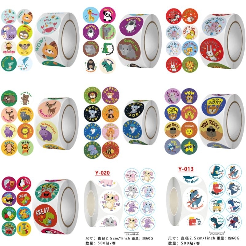 ±500PCS STIKER ANIMAL REWARD TEMPEL DIY LABEL STICKER ROL