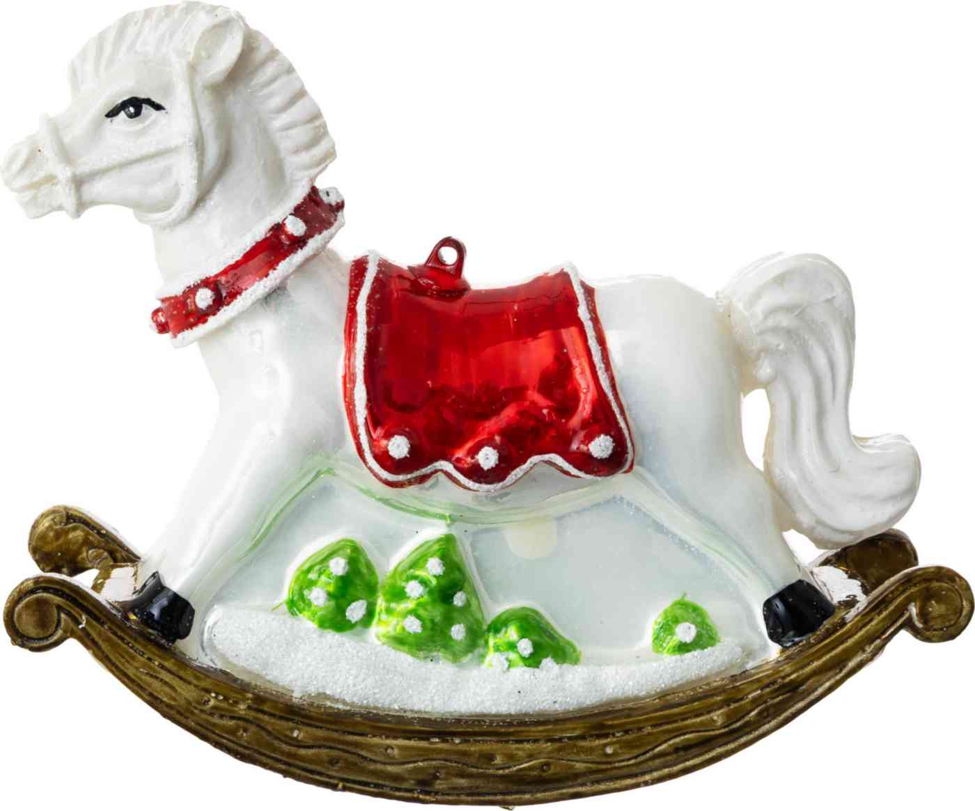 Товары для новогодних и рождественских праздников: елочное украшение Лошадка-качалка. Размер: 12x3.7x9.7 см.