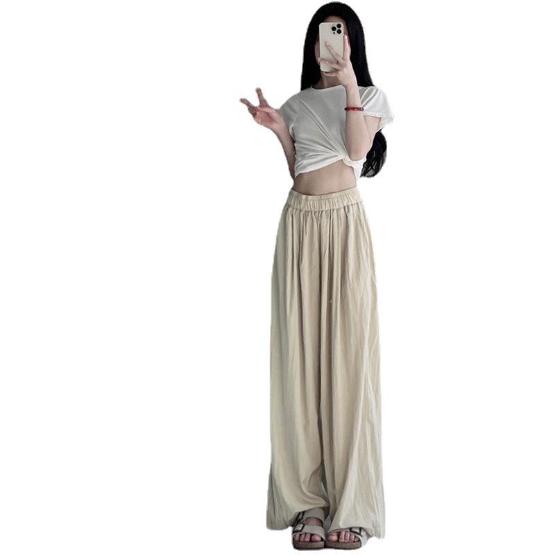 Абрикосовые широкие брюки из ледяного шелка, женские повседневные прямые хлопковые брюки с высокой талией и конопли