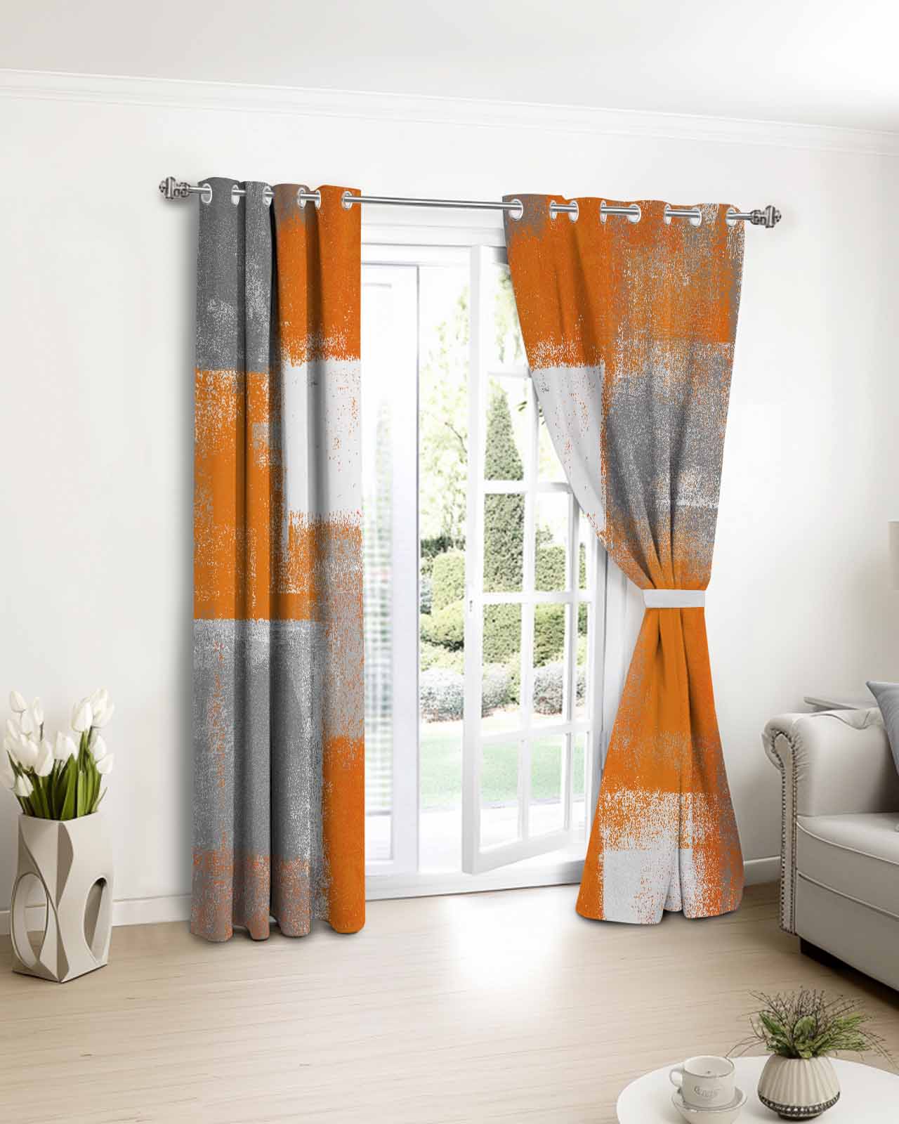 Абстрактная Оранжевая Пятнистая Текстура Оконная Занавеска Декор Спальни Занавесочная Панель Занавески для Гостиной 135W x 60H(cm) x1