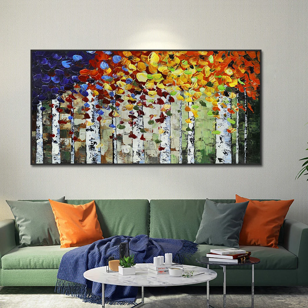 Абстрактная Толстая текстурированная синяя красная желтая листья деревьев масляная живопись 100% ручная роспись на холсте современное настенное искусство для домашнего декора