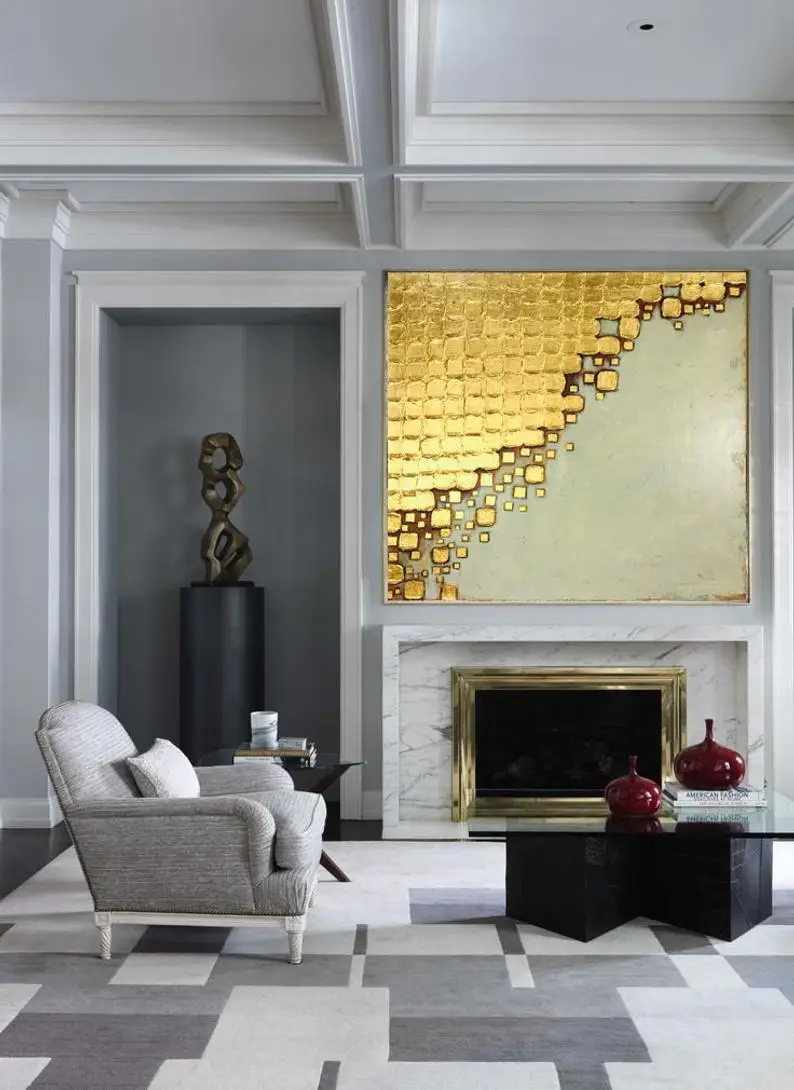 Абстрактная живопись, оригинальная Золотая живопись, большая серая абстрактная живопись, золотые листья, современная живопись, стена для г...