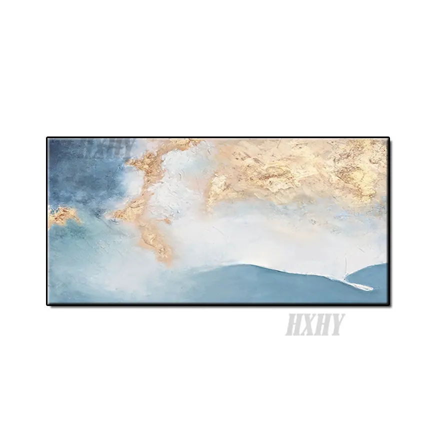 Абстрактная картина маслом Ручная работа Золотое облако голубое небо настенная Картина на холсте для гостиной спальни домашний Декор без р...