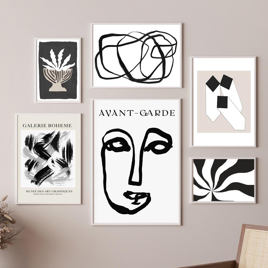 Абстрактные линии женщина лицо беспорядочная геометрия цветочный горшок лист плакаты и печать стена искусство холст живопись современная гостиная домашний декор