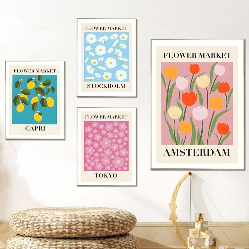 Абстрактные плакаты с цветочным рынком, тюльпаны, Токио, Япония, цветы вишни, холст, картина, Дейзи, побережье Амальфи, лимоны, настенное искусство, домашний декор