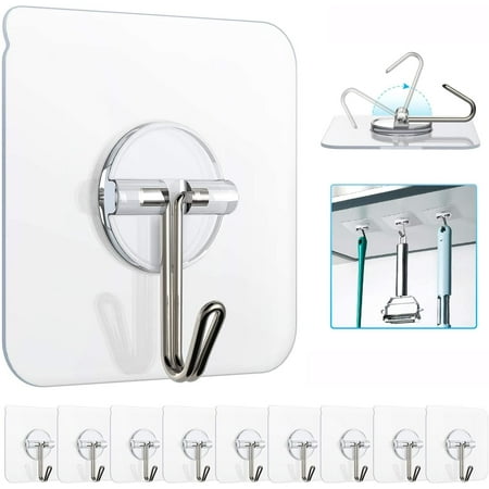 Adhesive Hooks Reusable Utility Hooks Heavy Duty 13LB Wall Hooks Transparent Seamless Hooks Waterproof and Oil Proof for Kitchen Bathroom Ceiling Office Window 10 Pack