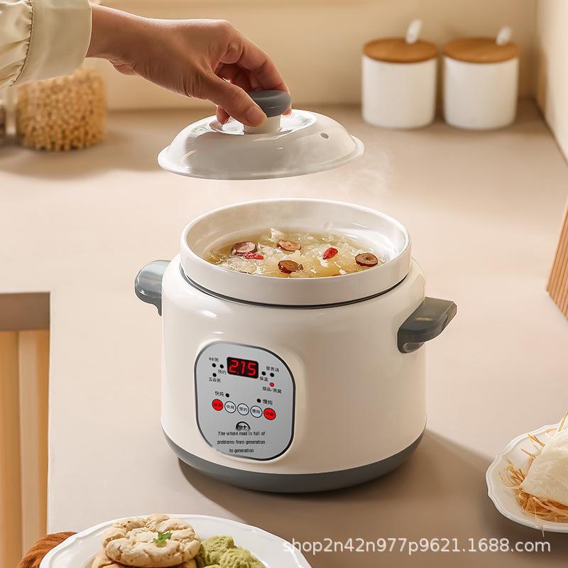 «Автоматическая керамическая электрическая кастрюля для тушения - белая фарфоровая кашеварка для здорового питания» 1.8L синий/серый