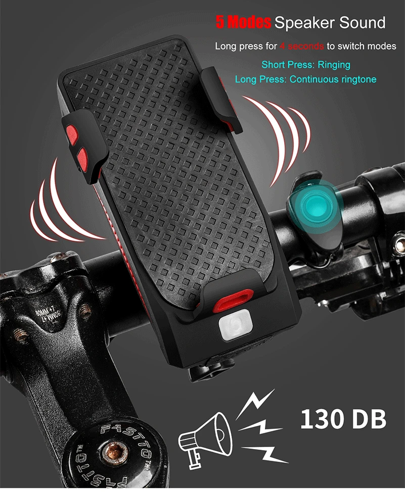 WEST BIKING 4 In 1 Bicycle Light Flashlight Bike Horn Alarm Bell Phone Holder Power Bank Bike Accessories Cycling Front Lamp MTB