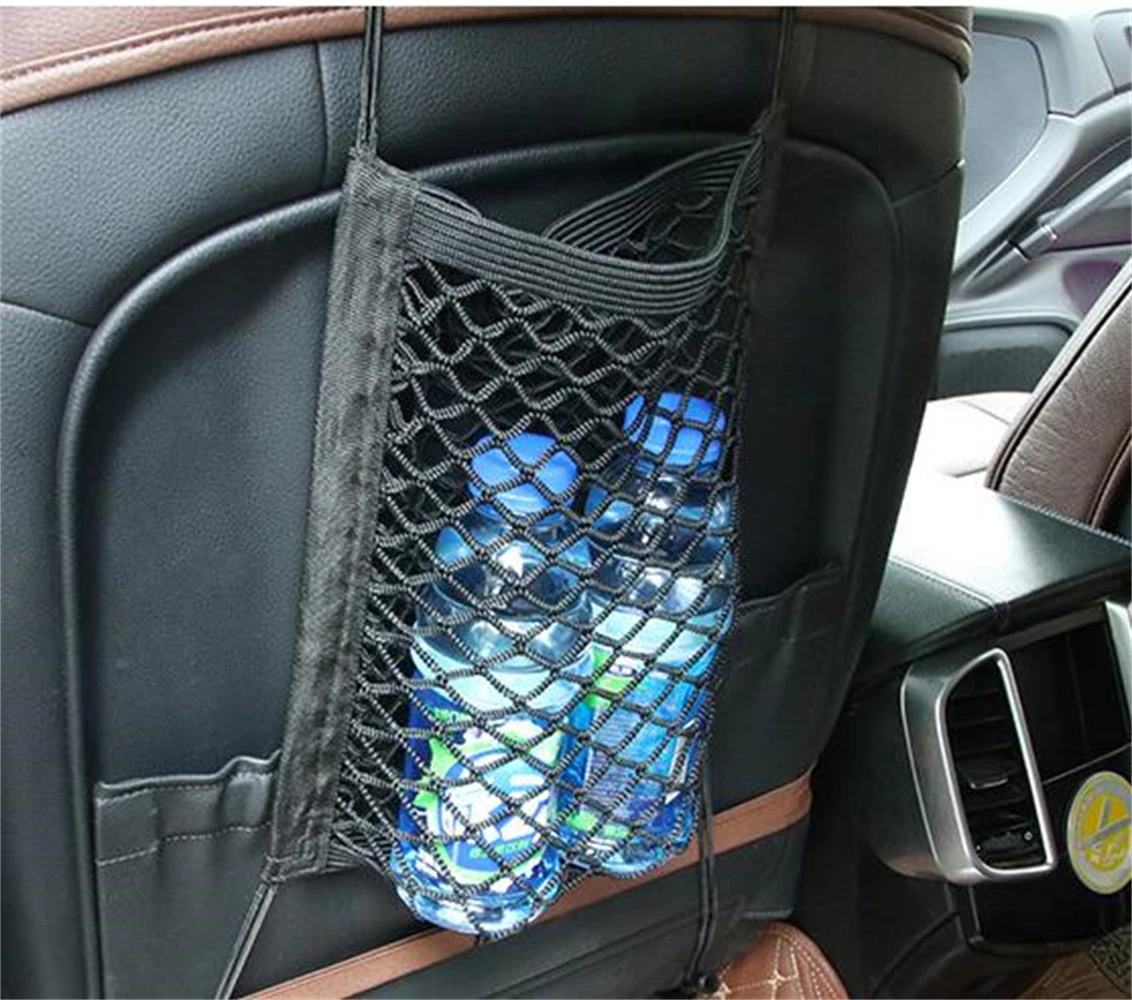 Автомобильный держатель для мусорного ящика, эластичная сетка на сиденье, Волшебная наклейка, сетка для хранения, карманная задняя Сумка на...