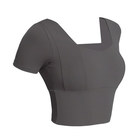 JunDanmall Yoga Tops Short Sleeve Breathable Nylon Bulid in Bra Workout Sport Shirts for Women