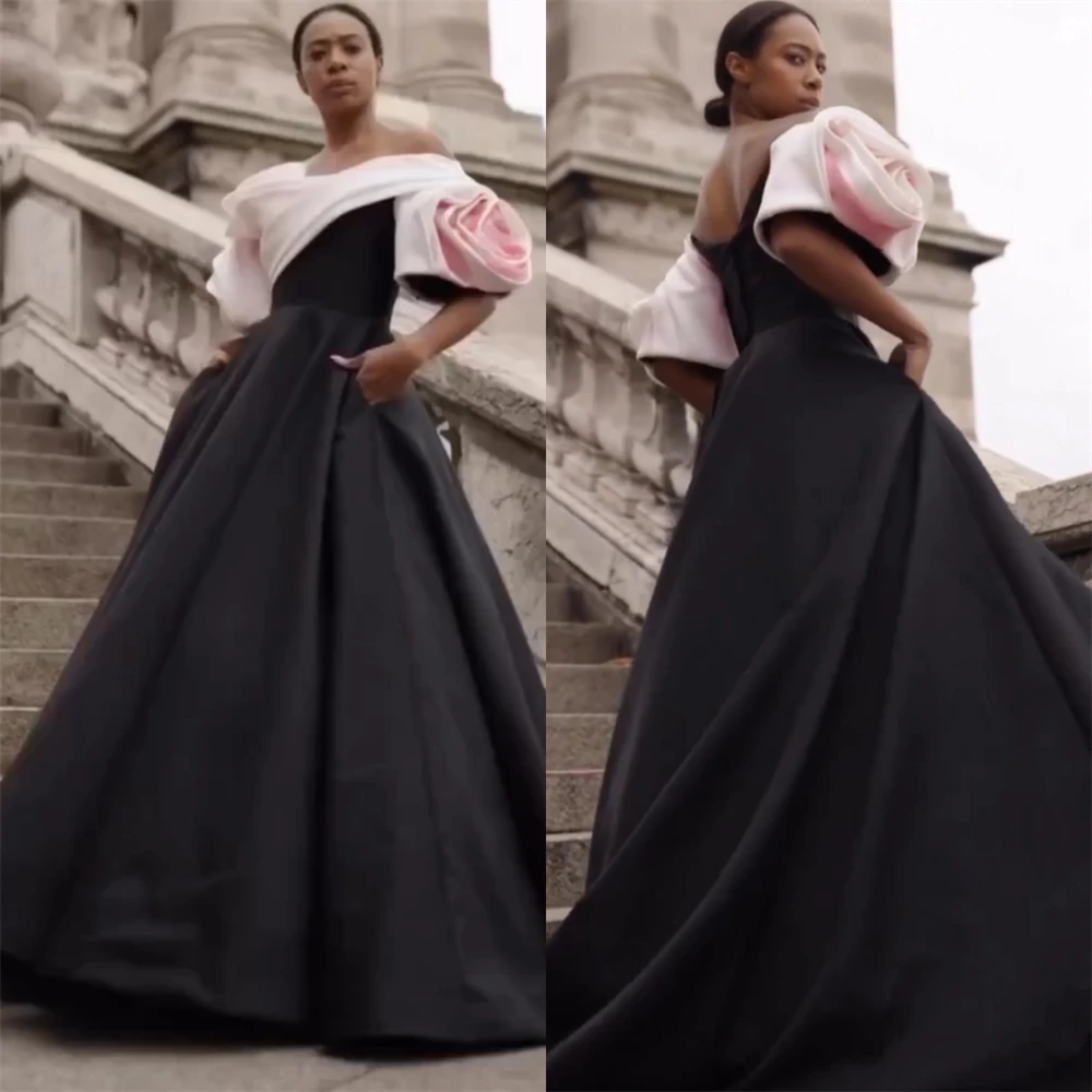 Customized es Fashion Off-the-shoulder Ball gown Homecoming Flowers Draped S Occasion Evening Gown black girl