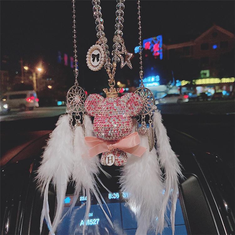 Автоподвеска с перьями, креативная ромбовидная голова, большое автомобильное зеркало заднего вида, ювелирные изделия, милая леди