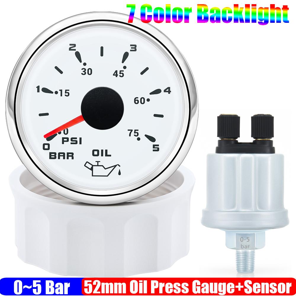 Авто Автомобиль 7 цветов подсветки 0~5 бар 0-10 бар измеритель давления масла с датчиком 52 мм манометр давления масла + датчик RV морская лодка 12 В 24 В