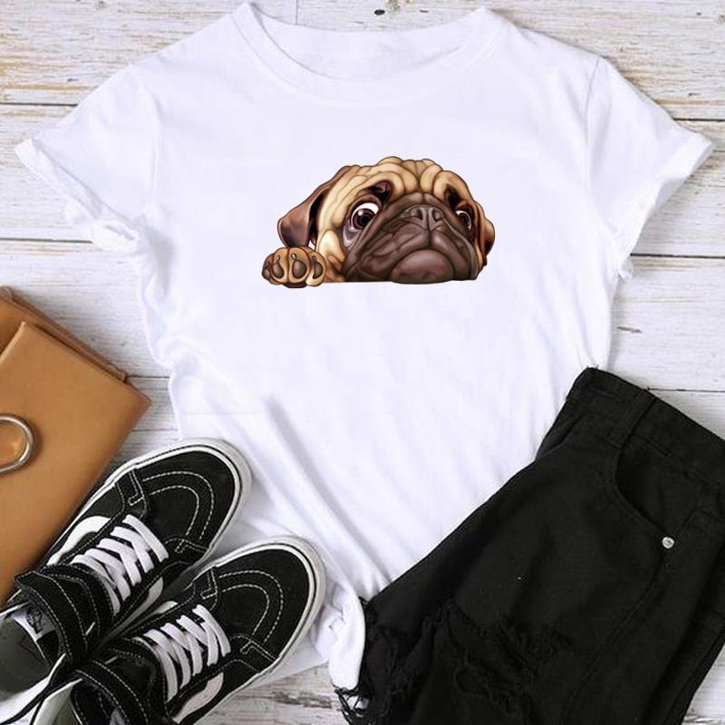 Азиатский размер с принтом Графическая футболка Собачья морда Тренд Прекрасная симпатичная повседневная женская одежда Летняя топовая дамская женская футболка с коротким рукавом