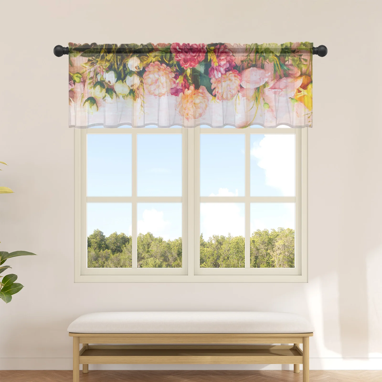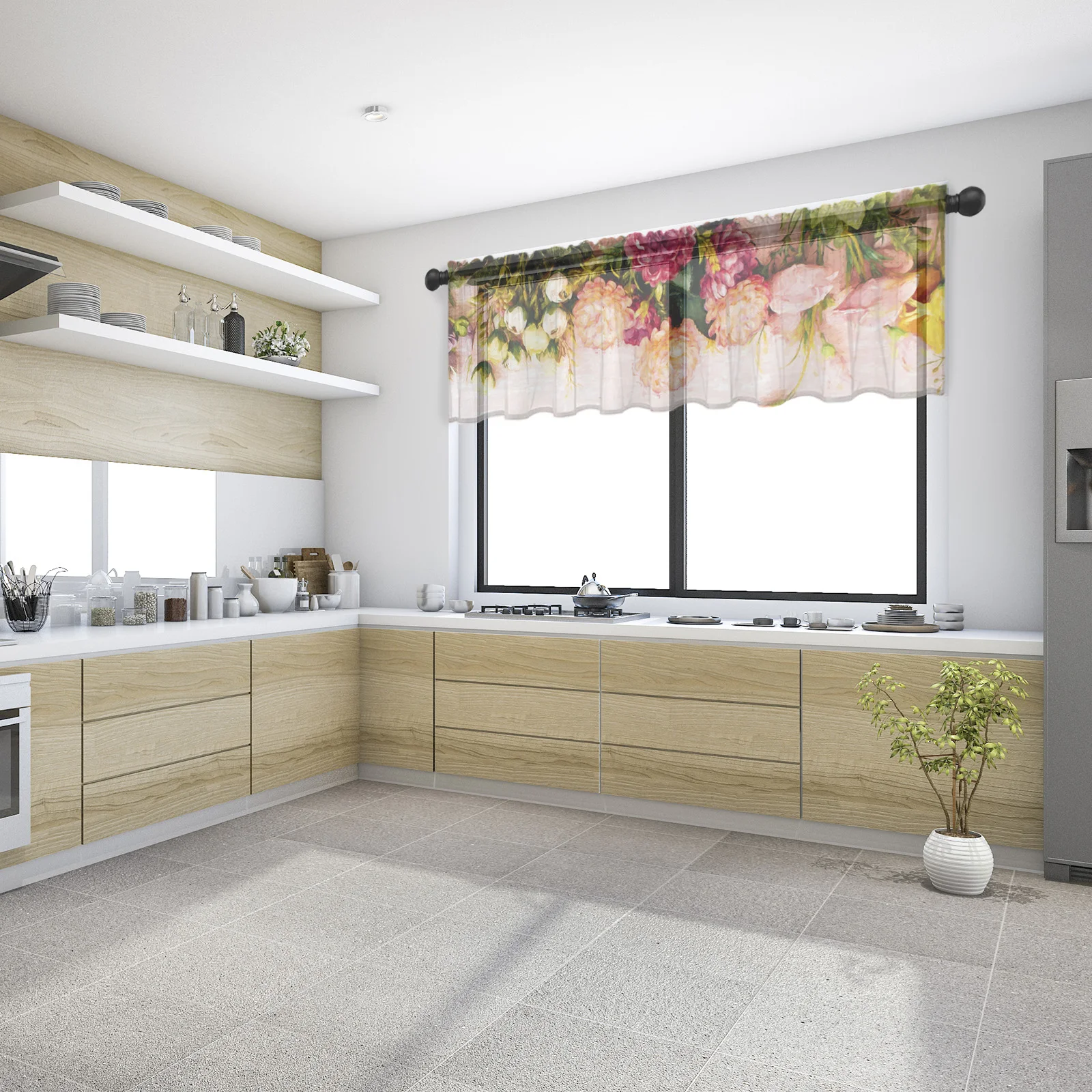 Акварельные Цветы, растения, кухня, маленькая фототкань, прозрачная Короткая занавеска, спальня, гостиная, домашний декор, вуаль, занавески