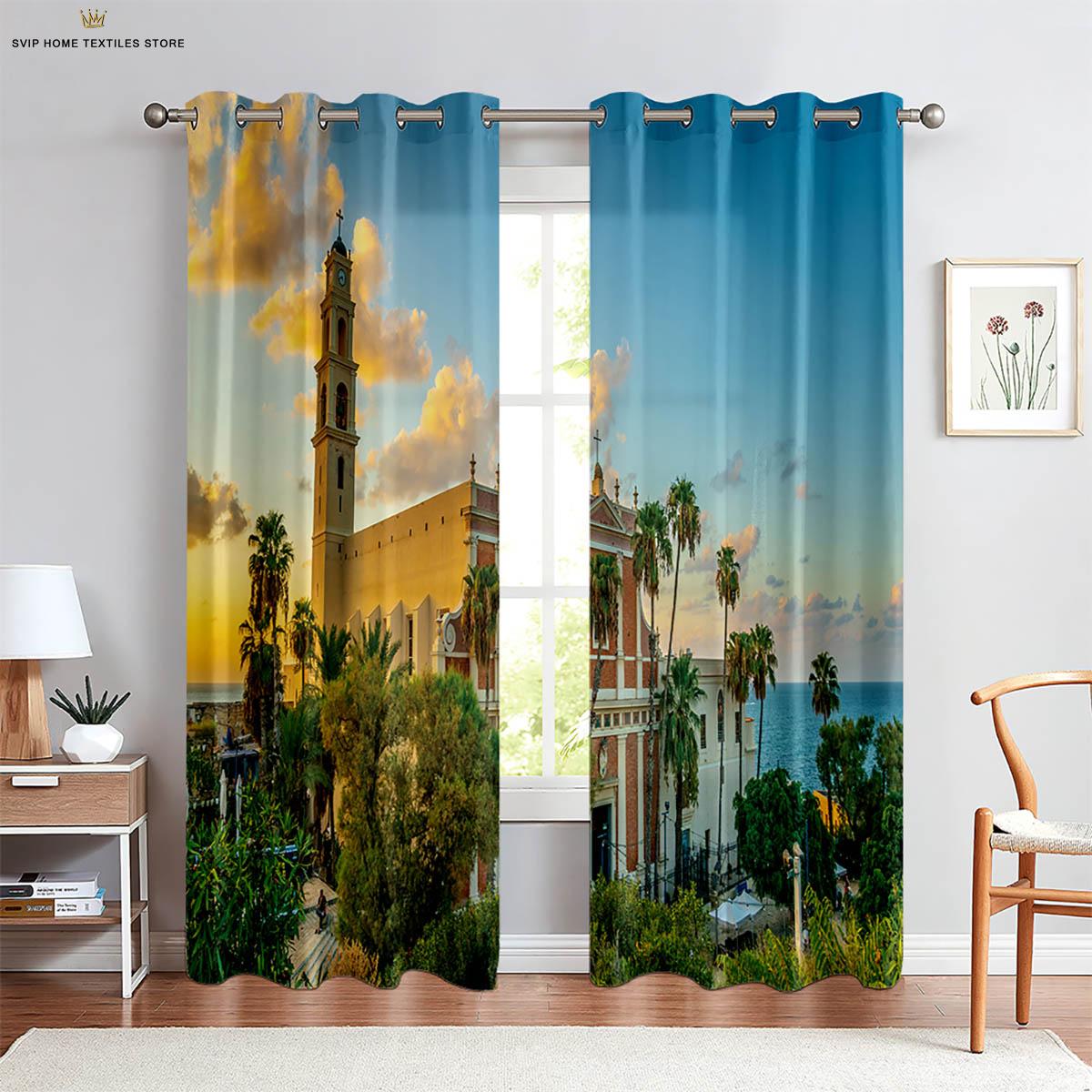 Акварельный Город Здание Ночной Вид 3D Печать Штора Спальня Гостиная Кабинет Кухонная Штора Домашнее Украшение 2 Штуки W50X130H(CM)X2PCS&Rod pocket
