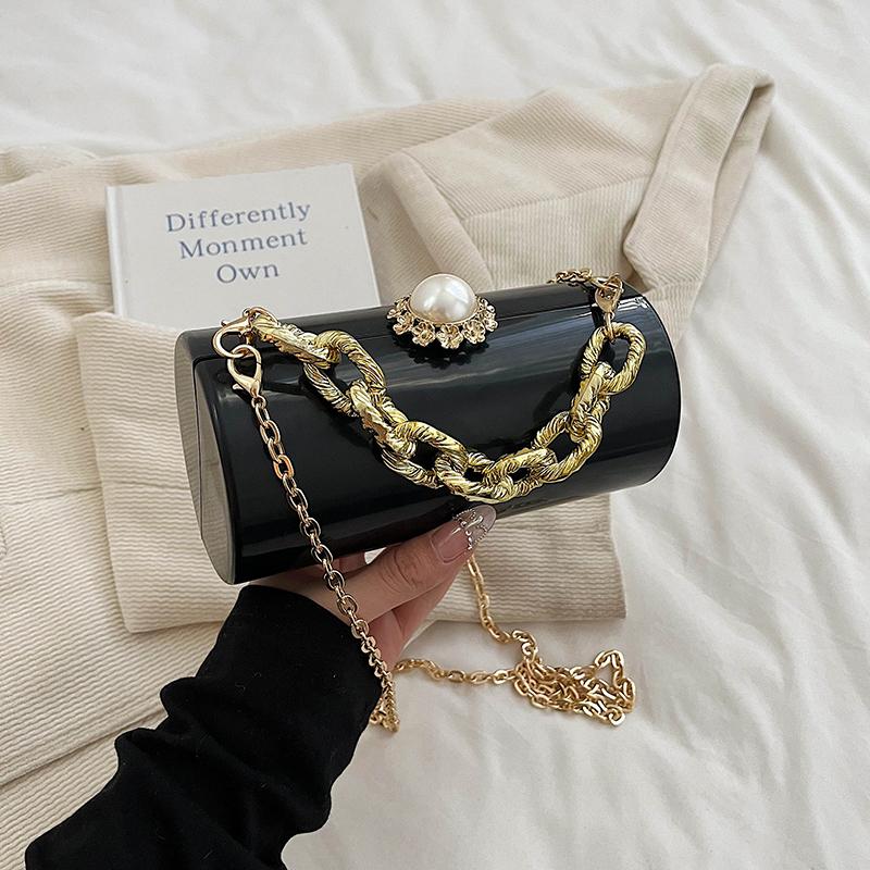 Акриловая модная банкетная сумка-цилиндр из ПВХ для женщин, лето-осень, новая сумка через плечо с цепочкой, женская сумка с перламутровыми пуговицами, декорированная вручную Mini(Max Length<20cm)