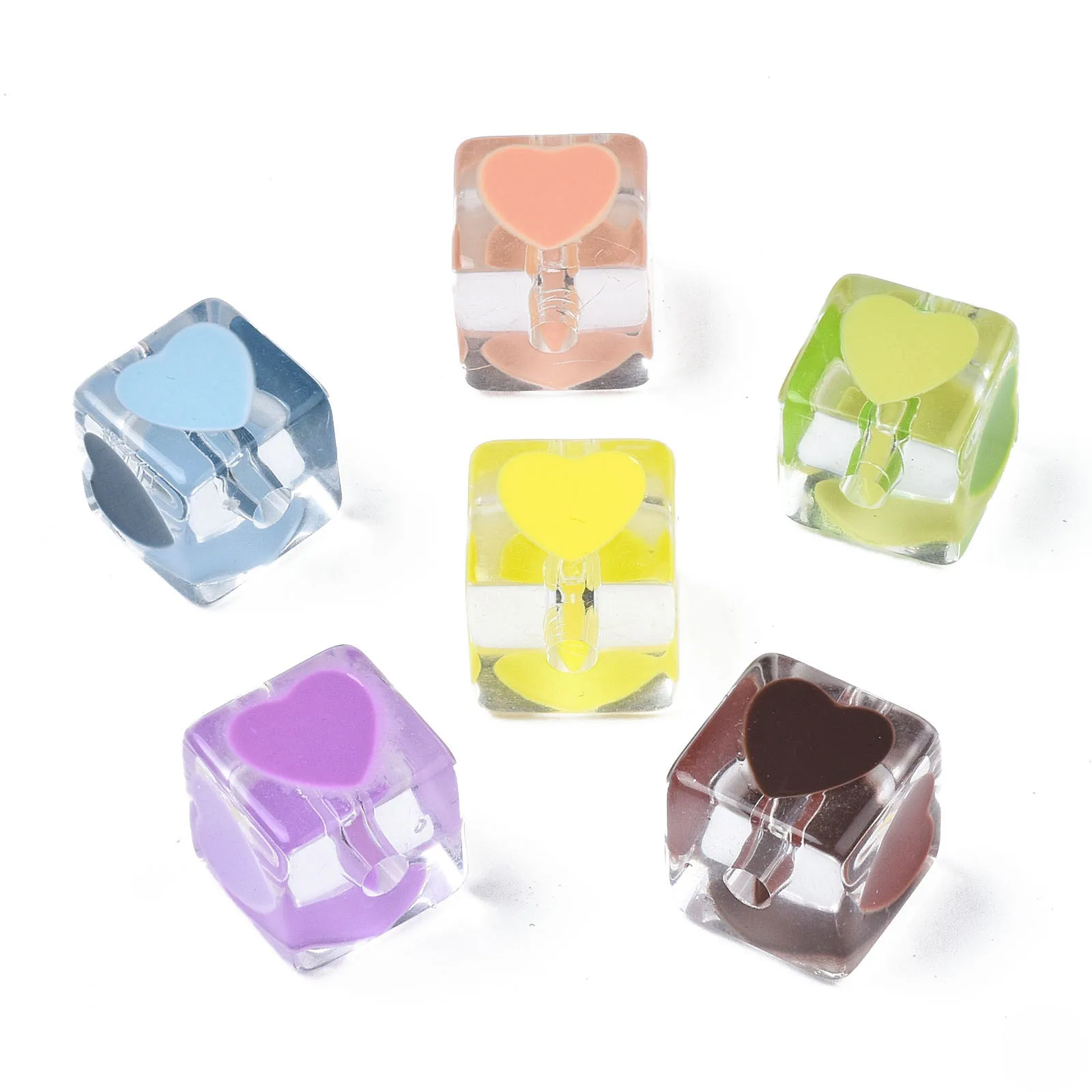 Акриловые бусины с принтом в виде сердца, прозрачные эмалированные разноцветные бусины для ожерелья, браслета, сережек, изготовление ювели...