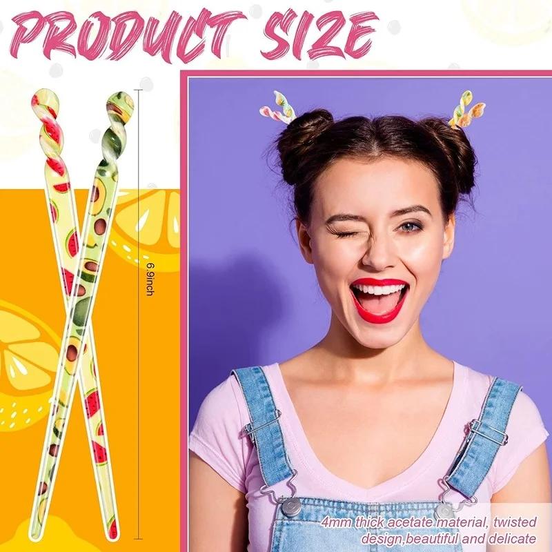 Акриловые палочки для волос для женщин и девочек, летние заколки для волос с фруктами, простые стильные шпильки для волос, свадебные украшения для волос, аксессуары