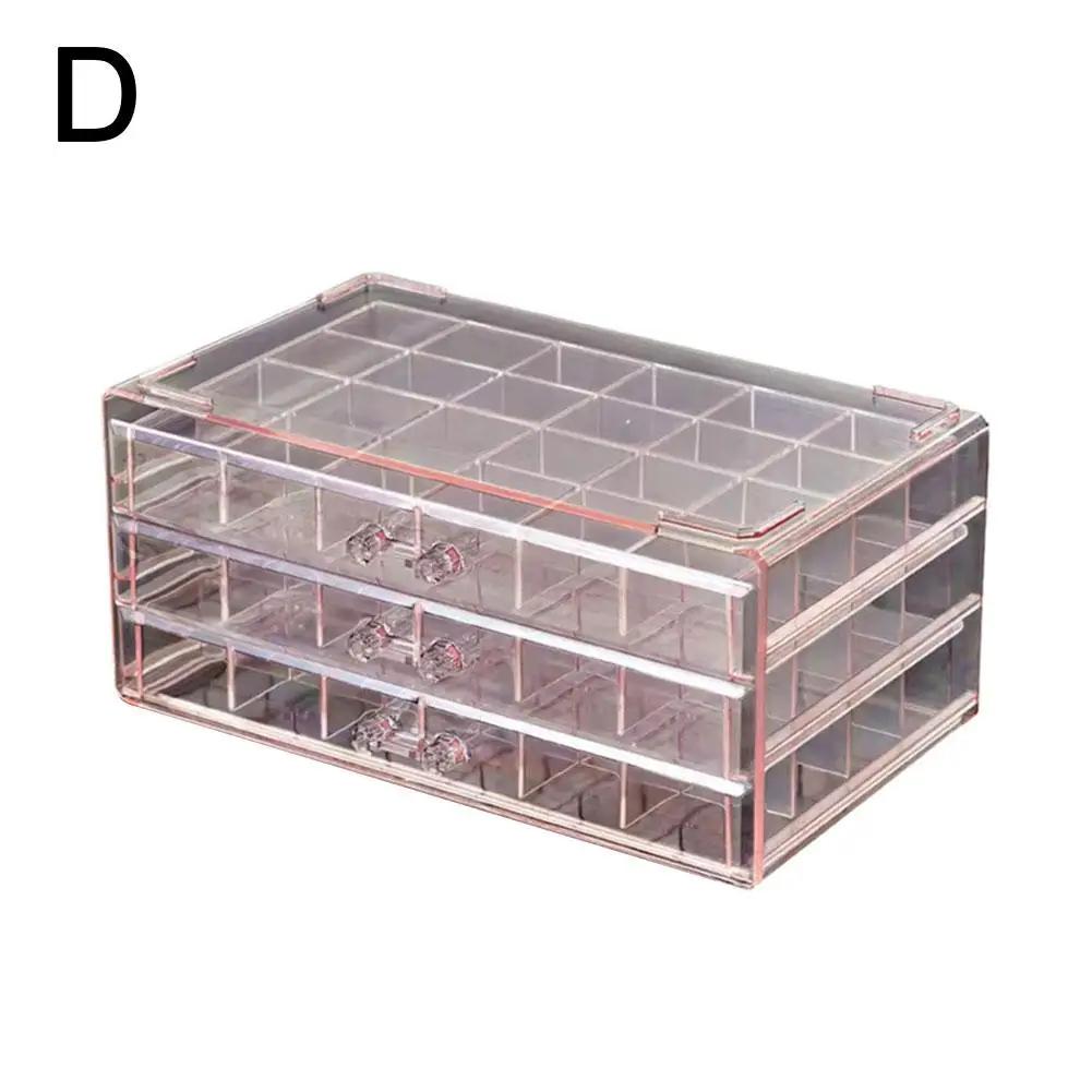 Акриловый органайзер для ювелирных изделий, трехслойный прозрачный держатель для сережек с 3 ящиками, 72 ячейки для женского ювелирного дисплея K7D9 очистить розовый