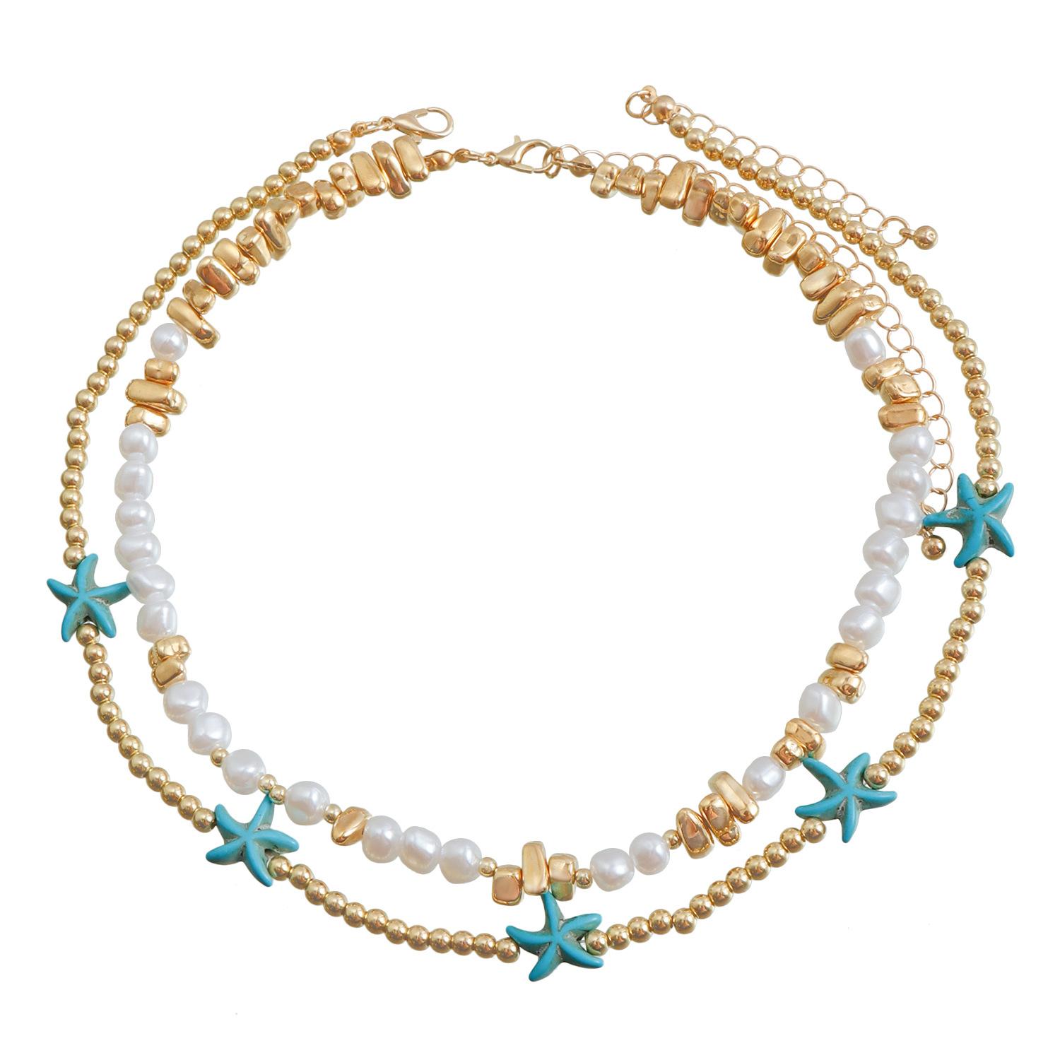 Аксессуары Бохо Курортный Ветер Пляж Цепочка на ключицу Бирюзовый Подвеска Морская звезда Рисовая бусина Двойное ожерелье