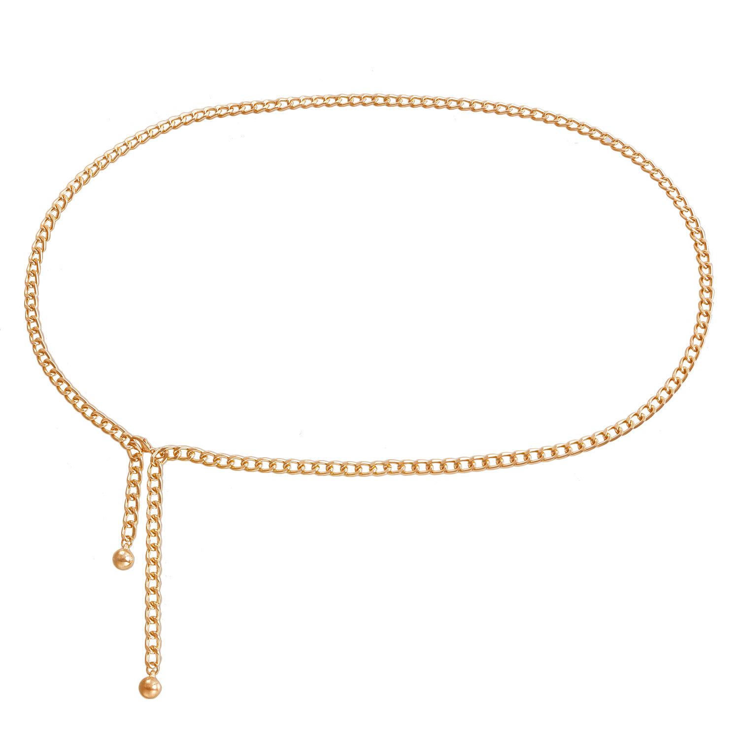 Аксессуары, Женский декоративный пояс Металлическая тонкая поясная цепочка, Простая юбка Однослойная алюминиевая поясная цепочка золотой