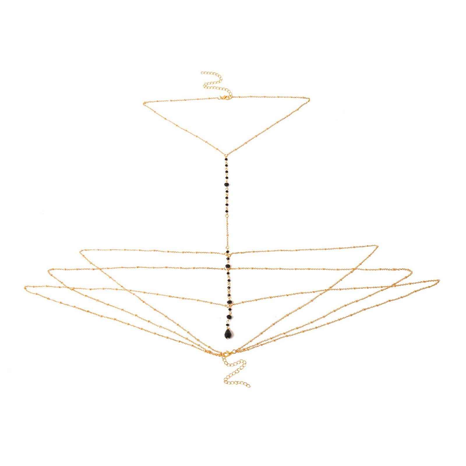 Аксессуары Индивидуальная кисточка Цепочка для тела Сексуальное многослойное ожерелье ручной работы с кристаллами Цепочка для одежды One Size золотой