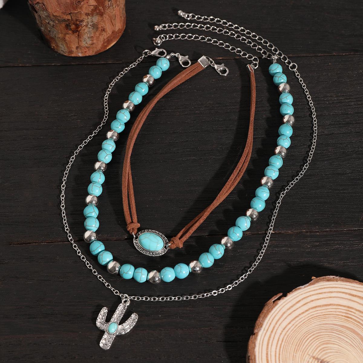 Аксессуары Ретро имитация бирюзы ключицы цепь ниша бисер ожерелье комплект этнический стиль кактус ожерелье орнамент
