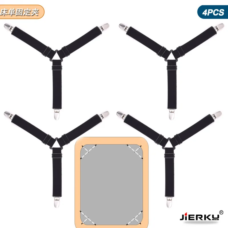 4 PCS Bed Sheet Fasteners Adjustable Triangle Heavy Duty Elastic Sheet Band Straps Suspenders Corner Gripper Holder Clip