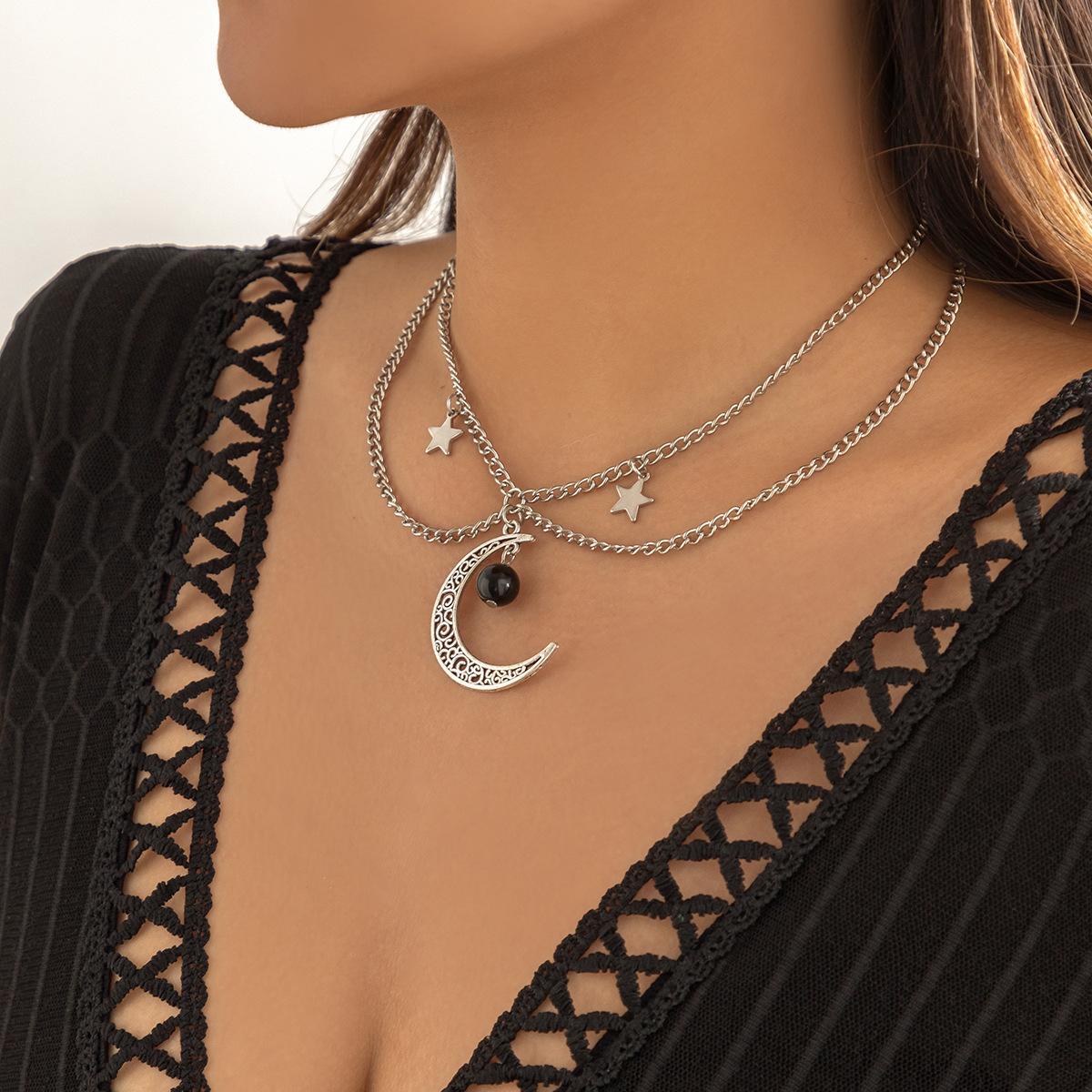 Аксессуары, простое геометрическое колье-цепочка U-образной формы, ретро-милое и крутое колье с бахромой в виде полумесяца и звезды для женщин