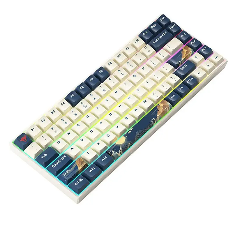 84 клавиши, трехрежимная Механическая игровая клавиатура, популярная сменная PBT пятисторонняя сублимационная KDA профильная Gateron Серебристая/красная