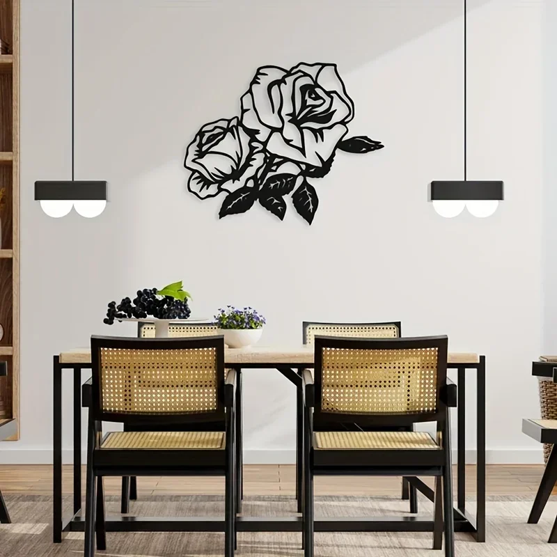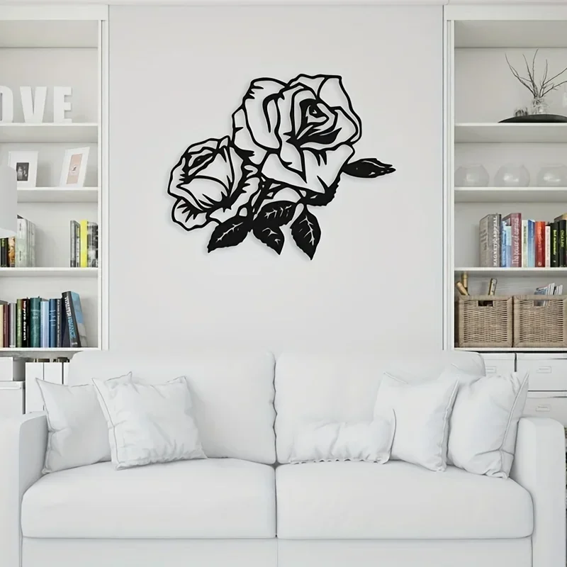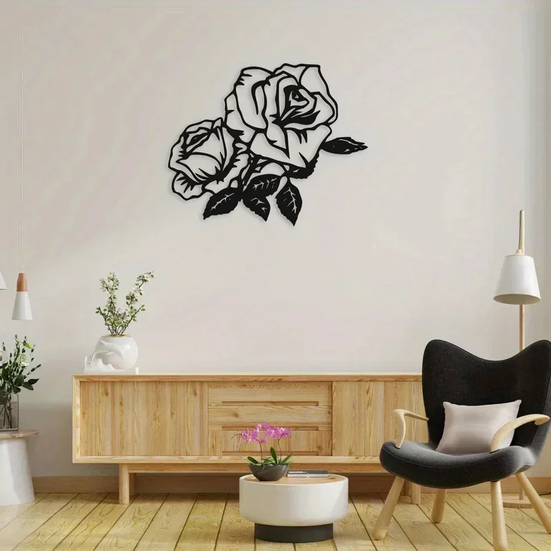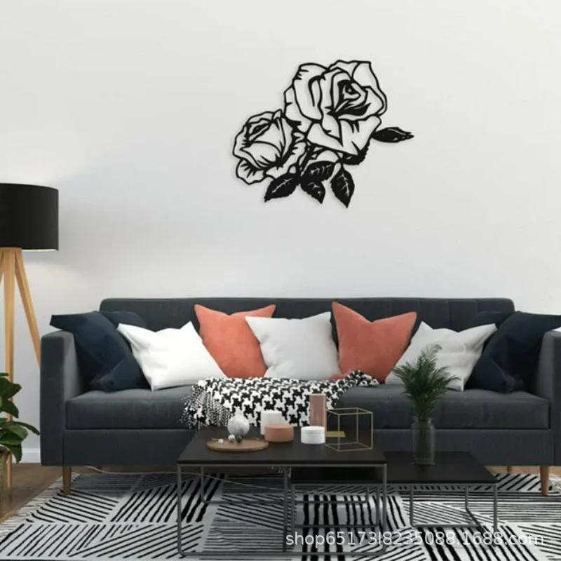 Акция, розовый цветок, металлическое настенное украшение, черное силуэт, железное украшение для гостиной, подарок на день Святого Валентина, металлический декор