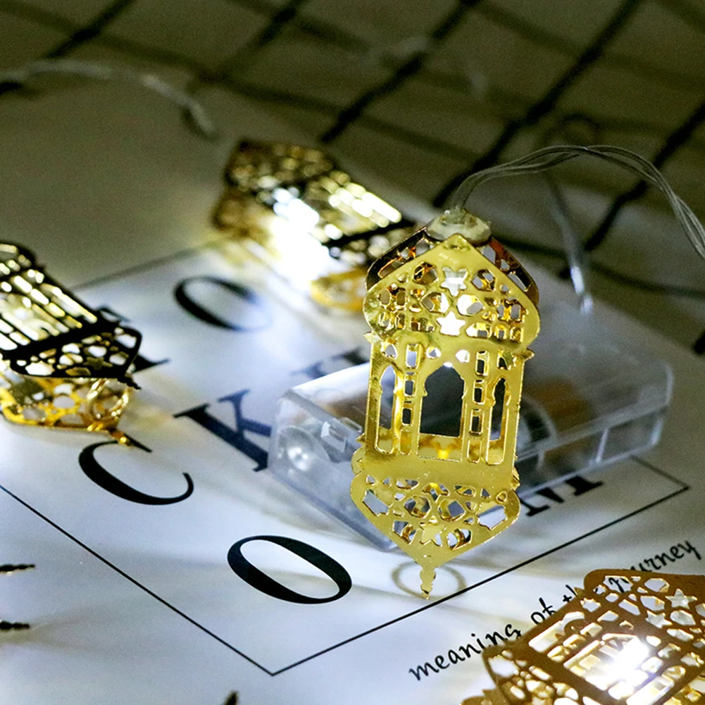 Golden Palace Lamp Eid Mubarak Islamic Festival Decoration 10 LED Arab Ramadan Castle Battery String Lights Home Muslim Gift