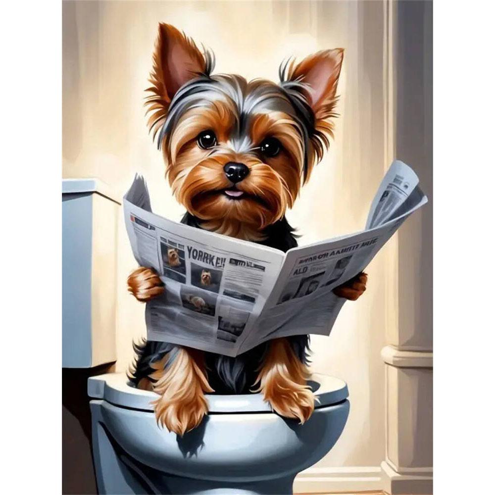 Алмазная живопись Собака Кот Туалет Мультяшная Алмазная мозаика Полная Круглая Выкладка Вышивка Животное Украшение Гостиная Round 20x30cm