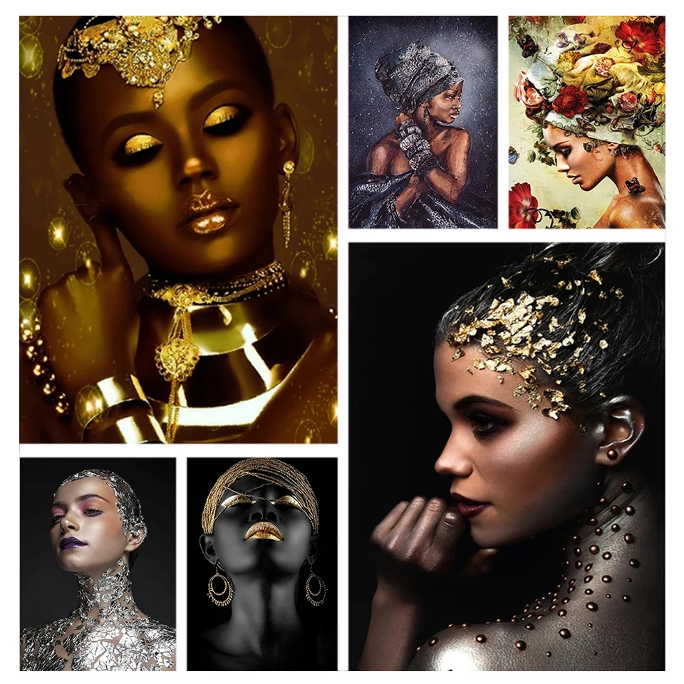 Алмазная живопись из черного золота, Африканская женщина, полная Алмазная вышивка, квадратные алмазы, круглая Алмазная картина, вышивка, новая серия, 2023, мозаика