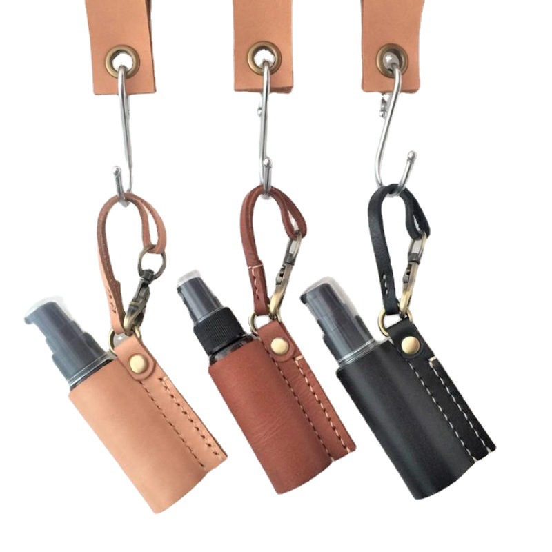 Party Favor Hand Sanitizer Holder With Bottle PU Leather Cover Tassel Keychain Portable Disinfectant Case Empty Bottles Holders Keychains for Gift