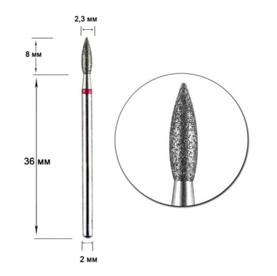 Алмазная фреза (пламя№8) с красной насечкой Диаметр 2,3мм Длина 8мм, Красный