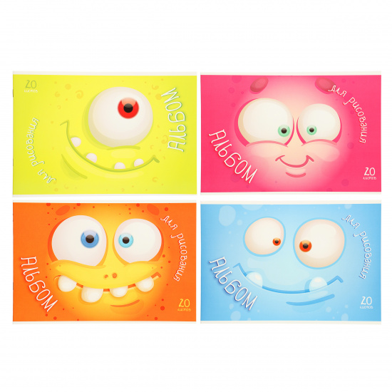 Альбом для рисования ПЗБМ Монстрята, 20 листов, на скрепке, в ассортименте