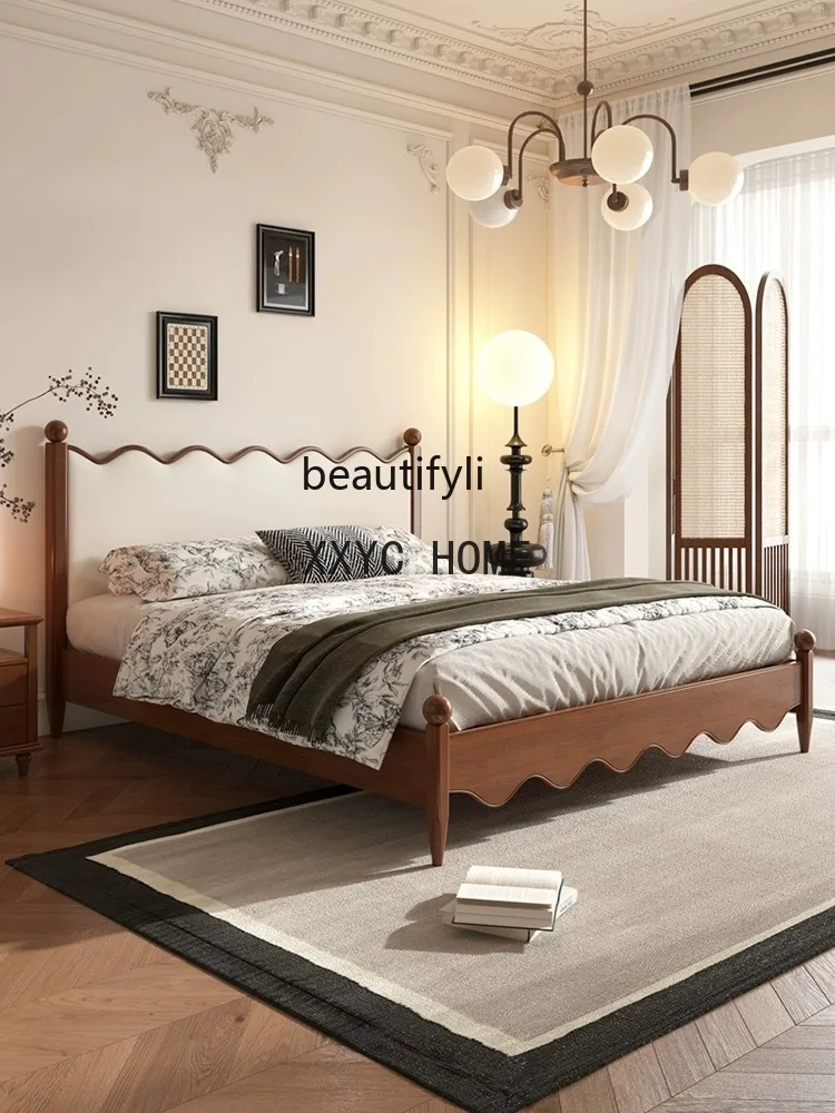 Американская Ретро однотонная деревянная кровать, античная спальня, двойная кровать, ясень, римская колонна, деревянная печать, черный