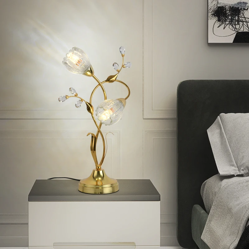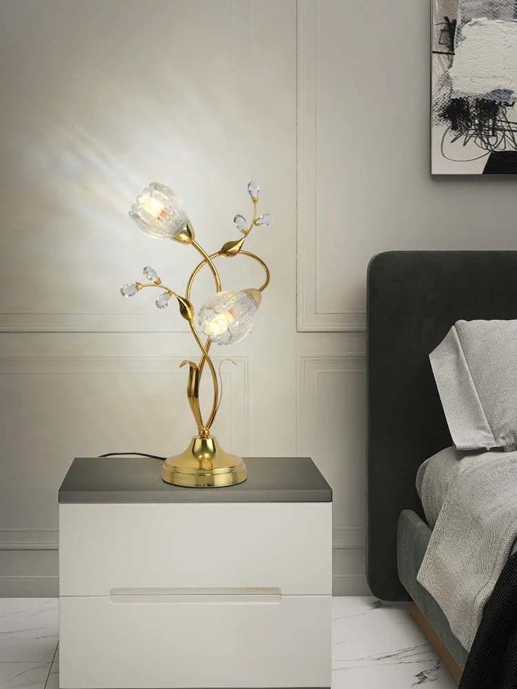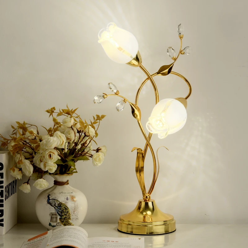 Американская настольная ретро-лампа в пасторальном стиле с цветами, европейская кованая хрустальная лампа в виде бутонов, французская лампа, роскошная прикроватная лампа для спальни