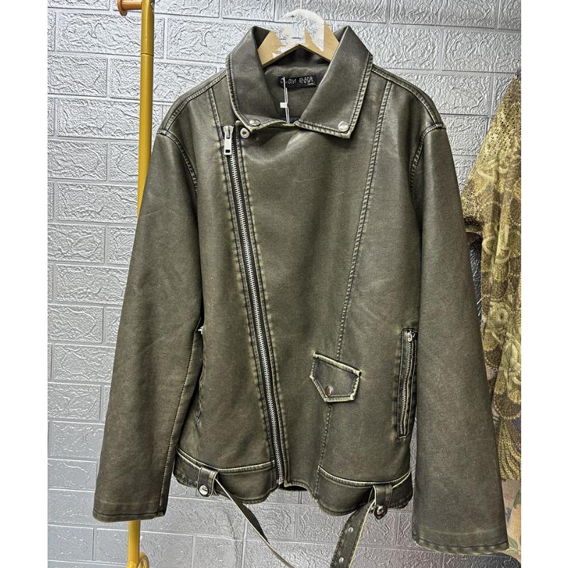 Американская ретро кожаная куртка женская короткая осенняя стильная новая потертая куртка из искусственной кожи мотоциклетная куртка XL
