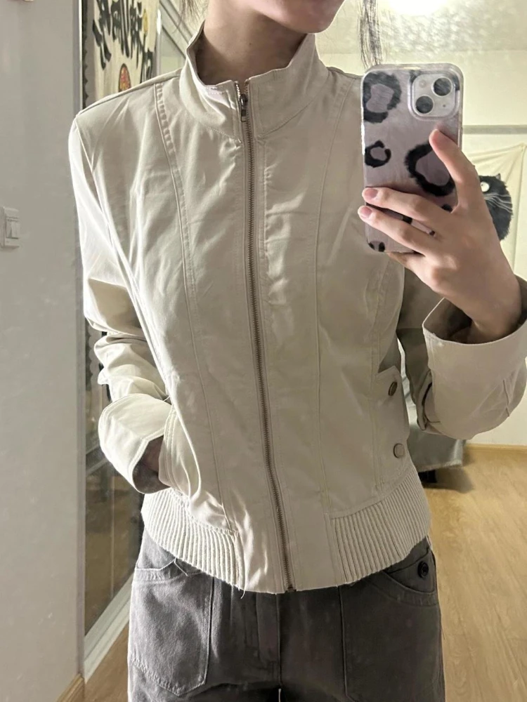 Американская ретро мотоциклетная панк-куртка женская ранняя осень милая уличная мода тонкое однотонное пальто новая мода винтажная одежда