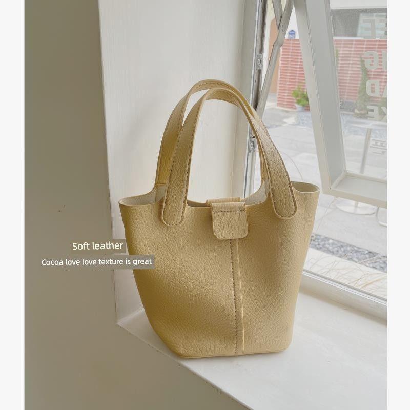 Американская сумка Женская Лето 2025 Новое поступление Модная Стильная Сумка-корзина Мягкая текстура Плечевая Сумка через плечо Сумка-ведро Cream yellow