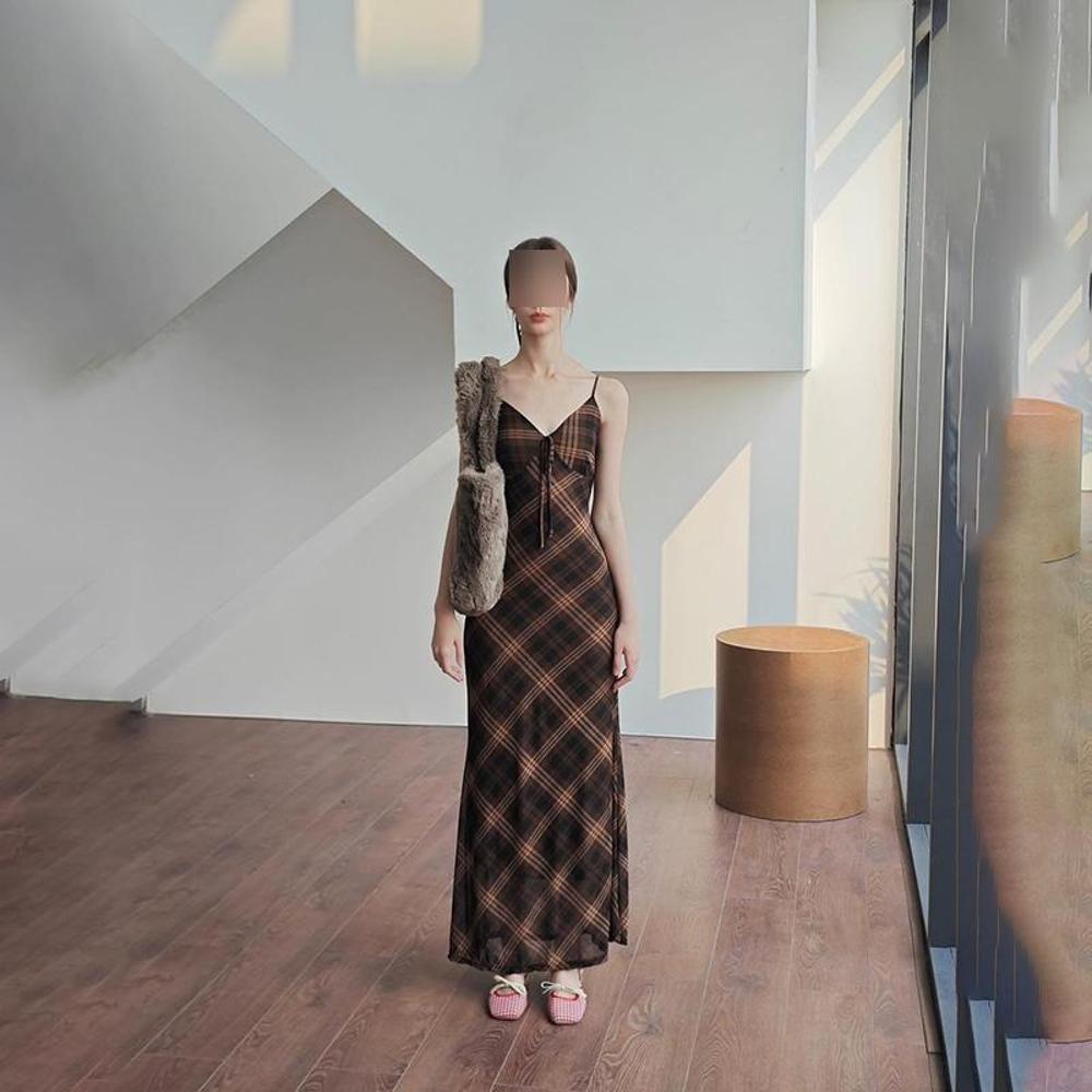 Американский винтажный стиль сублимационная печать шнуровка V-образный вырез платье-майка женское летнее приталенное стройнящее темперамент длинное платье XL- (recommended 110-60kg)