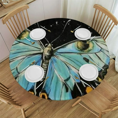 Patifu Butterfly Moon Stars Round Tablecloth 100% Polyester Waterproof Outdoor Picnic Camping Kitchen Dining - Stain-Resistant and Durable - Ideal for Restaurants Weddings Parties 31 -35