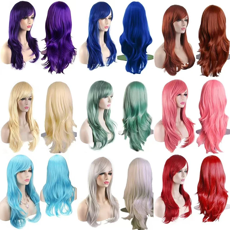 Аниме Косплей Красочные Длинные Вьющиеся Волосы Мяч Женское Вечернее Платье Матч Длинный Стиль Парик Вечеринка Леди Головные Уборы Вьющиеся Волосы Парик Чехол