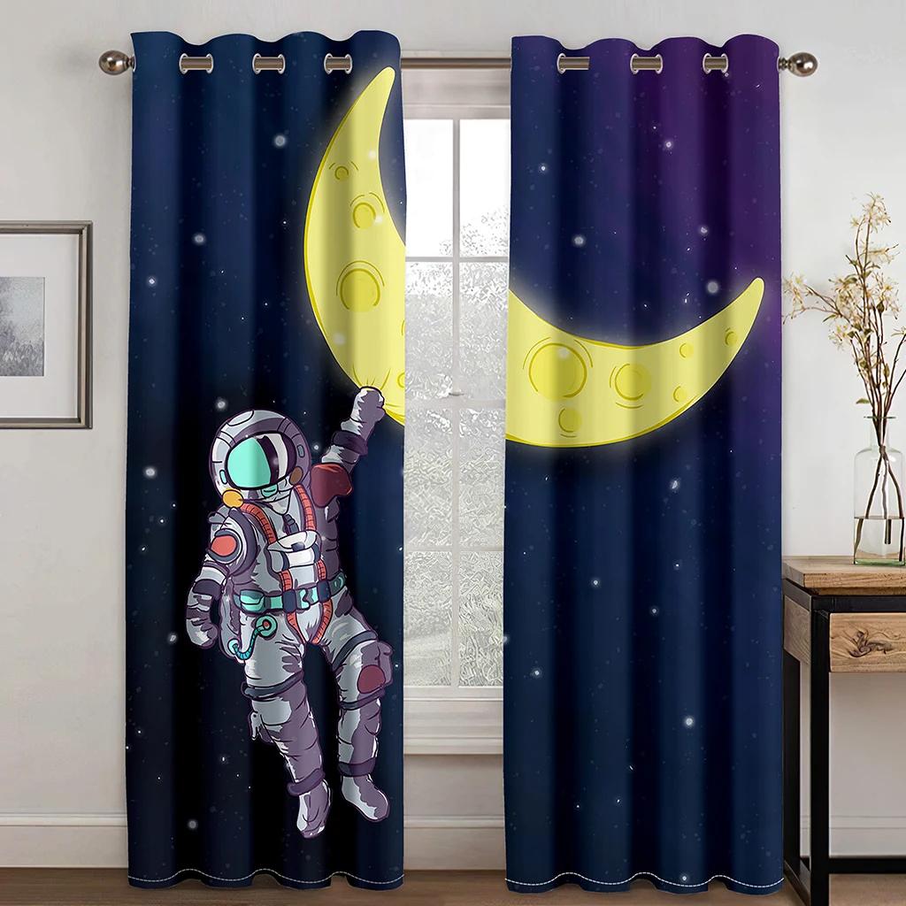 Аниме Мультфильм Космический Астронавт Плотные Блэкаут Шторы для Гостиной Спальни Отеля Высокое Затенение Оконная Драпировка Нового Стиля Штора W55 X H120cm X 2&Grommet Top