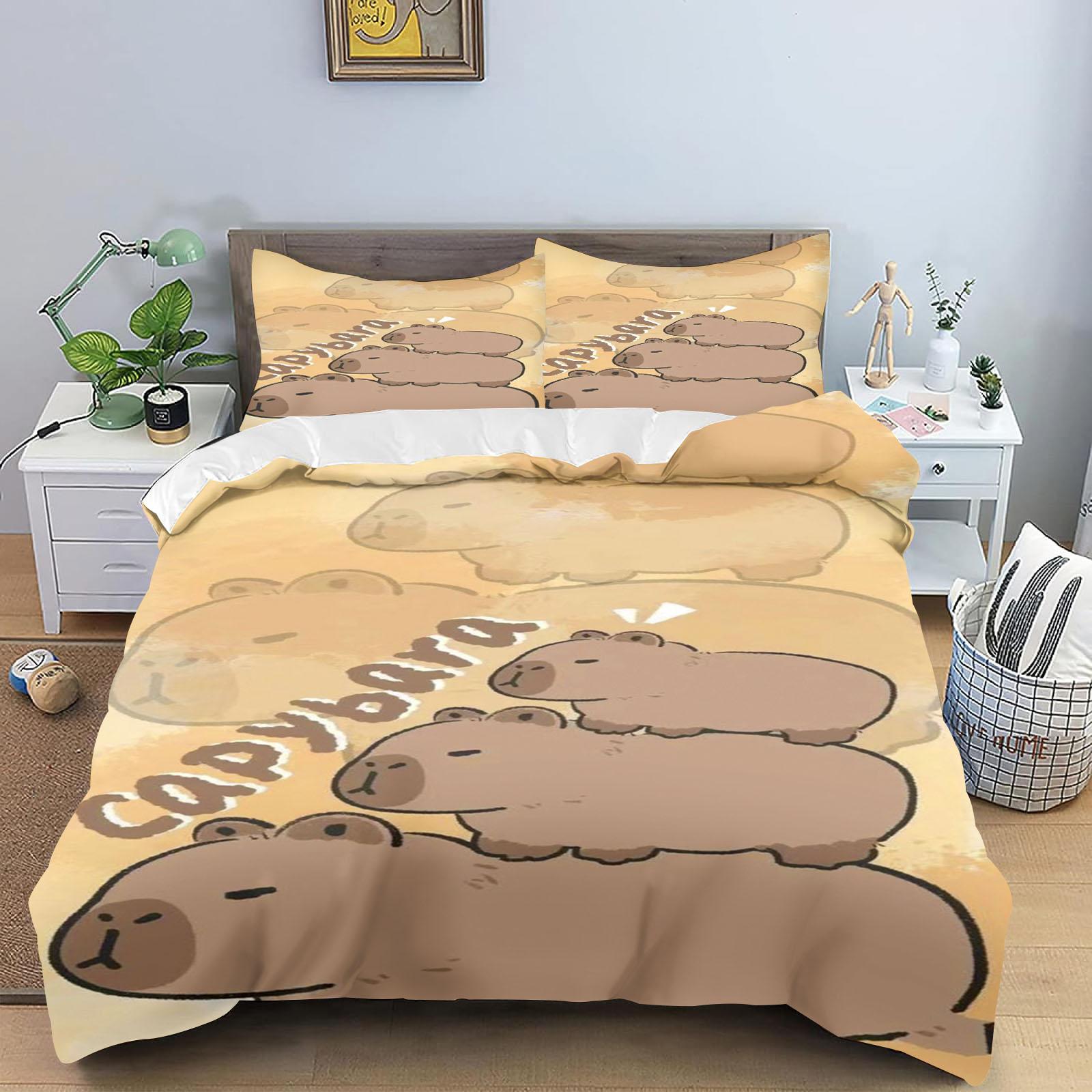 Аниме Покрывало для одеяла Капибары Постельное белье Наволочка С принтом Детский и Взрослый Набор Размер Квин Реактивная печать Одеяло 90X200CM