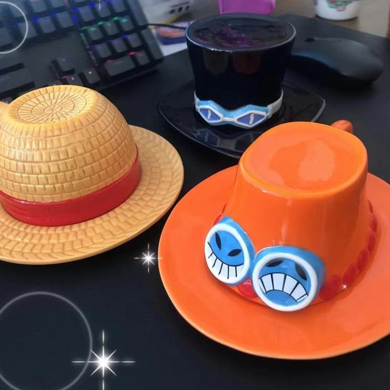 Аниме кофейная кружка с блюдцем креативная Луффи Эйс Сабо три брата в форме шляпы керамическая кофейная чашка подарок на день рождения ребенка чашка